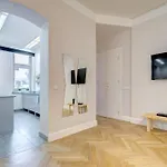 客室には寄木細工の床が敷かれています. このアパ-トからは庭園の眺めが一望できます.
